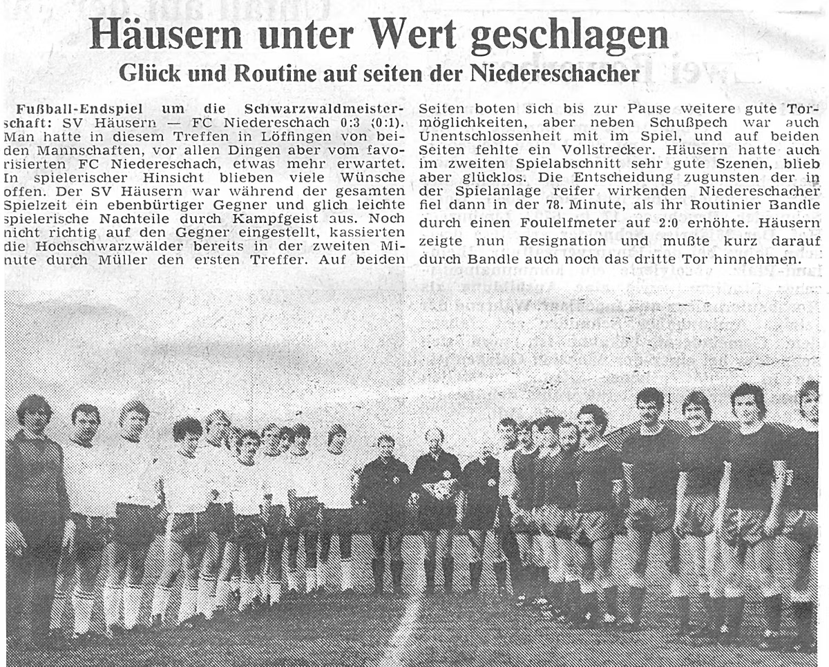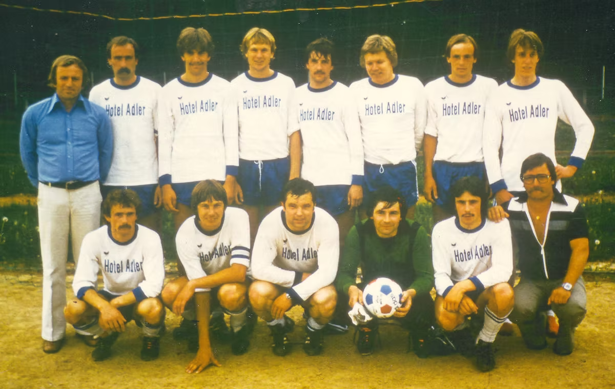 Bezirkspokalfinale 1979 gegen Niedereschach in Löffingen stehend von links: Moers Bernhard (Trainer), Andris Werner, Behringer Michael, Kuhlmann Uli, Fortenbacher Udo, Pollex Wolfgang, Andris Martin, Raufer Lutz kniend von links: Andris Hubert, Kuhlmann Michael, Kessler Klaus, Stelzer Hermann, Andris Johannes, Hägele Bernd (Betreuer) Bezirkspokalfinale 1979 gegen Niedereschach